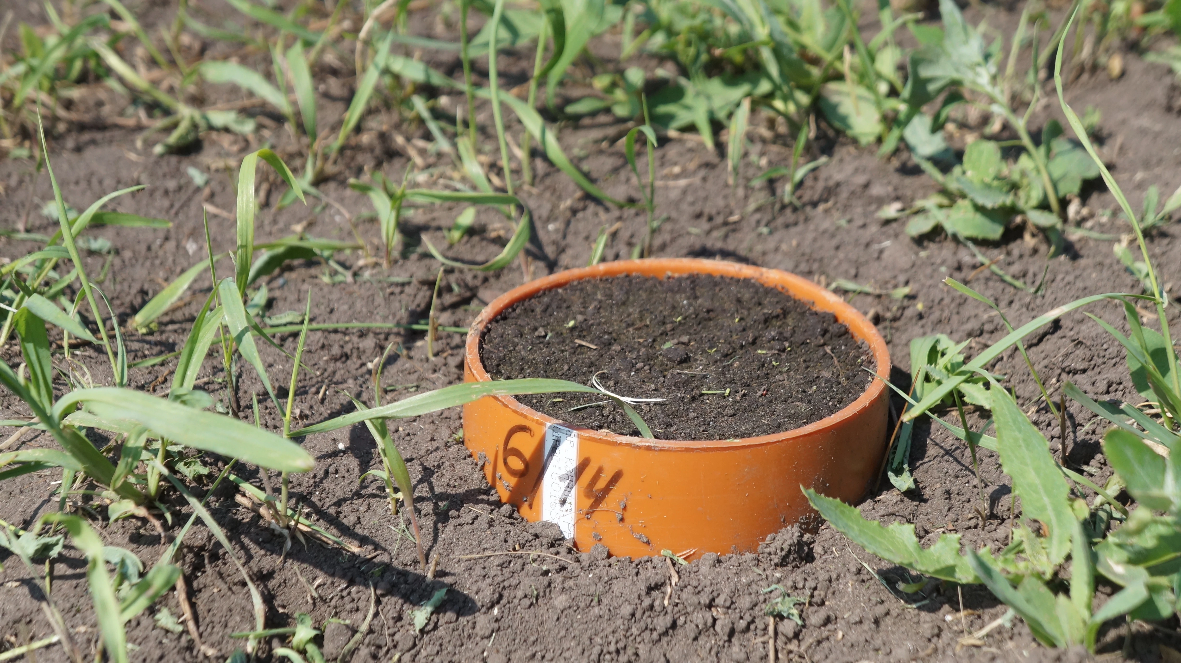 На типичном ровном участке поля (без растений) в почву с помощью стальной насадки и молотка забивают трубы из полипропилена (с внутренним диаметром 100 мм, длиной 300 мм) таким образом, чтобы над поверхностью почвы оставался край колонки высотой около 1 см. Колонки размещают друг от друга на расстоянии около 1 м. На выровненную поверхность почвы в колонке равномерно высыпают из полиэтиленовых пакетов обработанную препаратом навеску почвы, слегка ее уплотняют и засыпают сверху 1 см слоем необработанной почвы. Образцы почвы отбирают через 7, 14, 28, 56, 84 суток, выкапывая колонки с помощью лопаты. В лабораторных условиях колонки разделяют на три слоя по 10 см высотой.